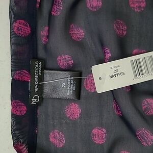 NWT New Directions Sheer Navy Blouse with Pink polka-dots size 2X. Button-up in the front.