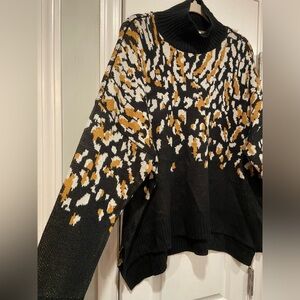 NWT New Directions Size XL Black Leopard Print Mock Neck Tunic Sweater Oversized