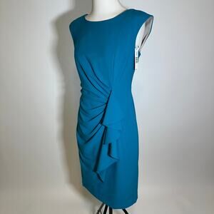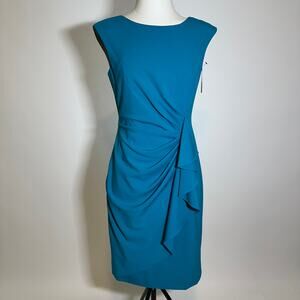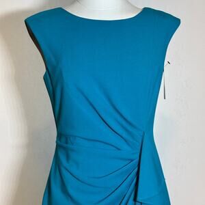 NWT New Directions Turquoise Faux Wrap Gather Sleeveless Sheath Dress Womens 6