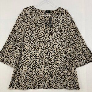 NWT New Directions size XL Brown Leopard Stretch Twist Front Flare Sleeve Blouse