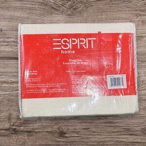NWT New ESPRIT Jersey Knit 3-PC Twin Sheet Set Tan Cream Flat Fitted Pillowcase