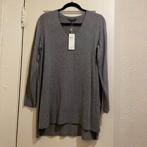 NWT New Eileen Fisher Cashmere Ash Gray V-Neck Tunic Sweater Size S/P