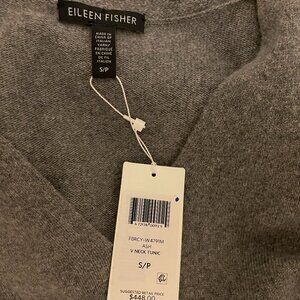 New with Tag New Eileen Fisher 100 Cashmere Ash Gray V-Neck Tunic Sweater Size S/P. Known as one of Eileen Fisher's 12 Essential Shapes, this is a classic shape they’ve returned to since 1997, with clean lines that layer over tanks, dresses—and pretty much everything else in your wardrobe. Tunic sweater is equal parts luxury and comfort, with a V-neck, side slits, and EF's finest plush thick recycled Italian cashmere. Sweater is composed of primarily of cashmere -- 70% Recycled Cashmere, 25% Cashmere and 5% Merino Wool. EF's Italian cashmere uses the finest fibers, minimally treated for knits that will grow even softer and more luxurious with time. Sweater is a size petite petite, Eileen Fisher's smallest size, but Eileen Fisher's sizes tend to run a size larger than your regular size. In perfect brand new condition, received as a gift but never worn, and from a smoke- and pet-free home.