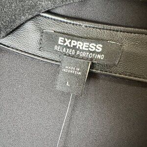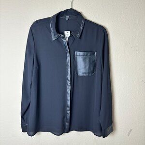 NWT New Express Leather Trim Sheer Blouse Button Up Shirt Size Large