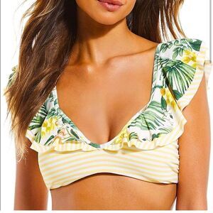 NWT New Gianni Bini Tropical Lemons Ruffled Bralette Bikini Swim Feminine L