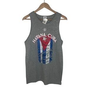 NWT New Havana Cuba Flag Delta Pro Weight Gray Tank Top Sleeveless Size Small