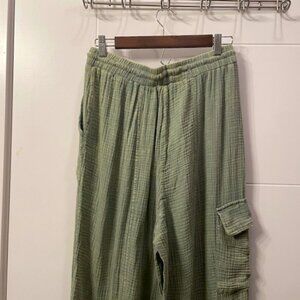 NWT New In Cotton Cargo Joggers Pull On Pants Green Size Large