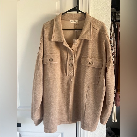 *NWT* New In Tan Button-Up Collared Sweater