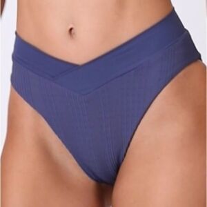 NWT New! L*Space Pointelle Rib Court Bikini Swim Bottom Slate Blue Small Beach