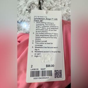 NWT New LULULEMON HR High Rise Align Pant 28” Legging SAKP Sakura Pink 2