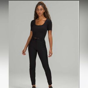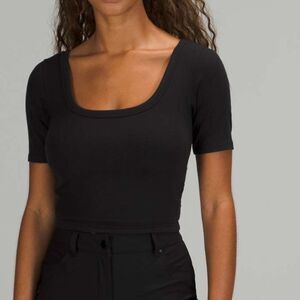 NWT New LULULEMON Ribbed Held Tight Tee Deep Scoop Neck & Back Crop Top Black 10