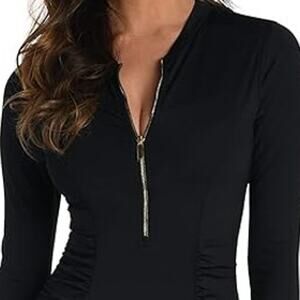NWT New La Blanca Womens Medium Black Long Sleeve Half Zip Paddlesuit Swim Suit