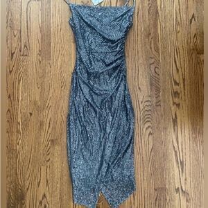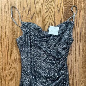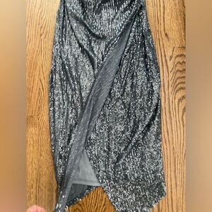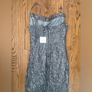NWT New Laundry by Shelli Segal long sequin gray gunmetal prom cocktail dress
