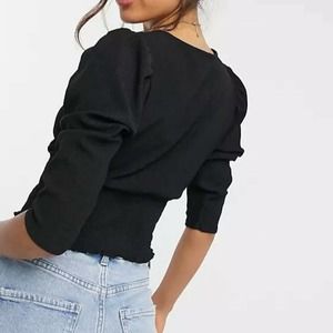 NWT New Look Womens Shirred Waist Wrap Top Size 8 Black Sold at ASOS Textured