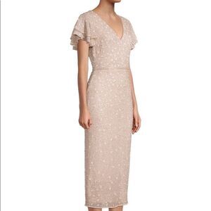 NWT New MAC DUGGAL BEAD RUFFLE SLEEVE MIDI COCKTAIL OYSTER SHEATH DRESS 6 Bridal