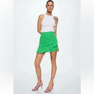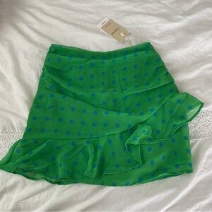 NWT New MNG by Mango XXS Thalia Mini Wrap skirt Green polka dot