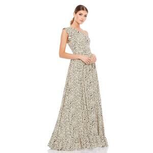 NWT New Mac Duggal Sz 2 Cheetah Dalmation One Shoulder Animal Print Maxi Dress