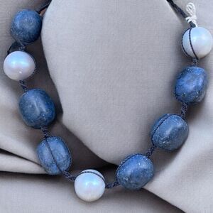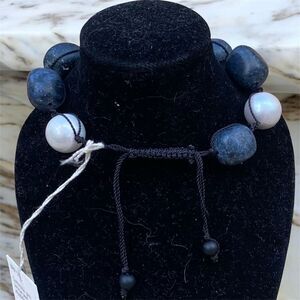 NWT New Margo Morrison Grey Baroque Pearls/Dumortierite Leather Rope Bracelet