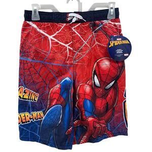 NWT New Marvel Spiderman Boys Medium Webbing Lined Swimming Swim Trunks