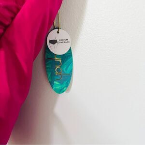 NWT New Mynah One Piece Halter Swimsuit Magenta Faux Belt Small Pink