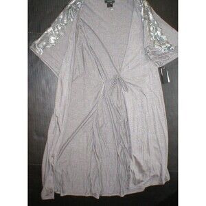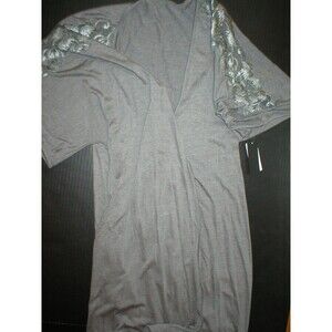 NWT New Natori Padma Gray Wrap Robe Womens S Very Soft Solid Jersey Pockets Lace