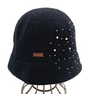 NWT New Old Stock Betmar New York Black Wool blend Rhinestone Hat Style B1285H