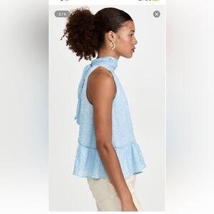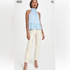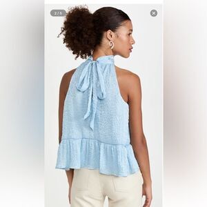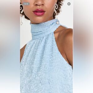 NWT New RAMY BROOK Keegan Top Twilight Sky Blue Keyhole Halter Satin Ruffle S