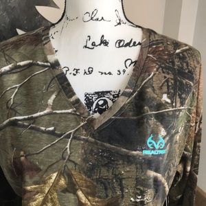 Realtree Camo Long Sleeve T-Shirt Women’s Hunting Clothing Size Large Teal Logo New NWT New With Tags