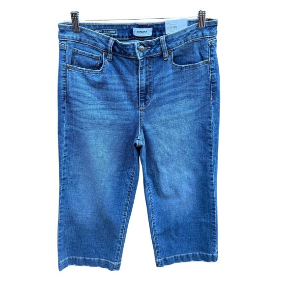NWT New Sonoma Womens Size 12R High Rise Wide Leg Crop Denim Blue Jeans