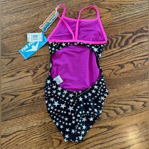 NWT New THE FINALS Athletic Racing Swimsuit Black Hot Pink Silver Stars 30 4
