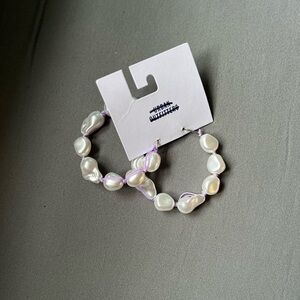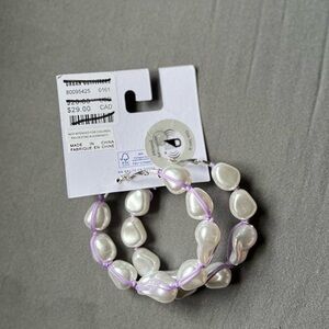 NWT New Urban Outfitters (UO) Purple Lilac Yarn & Faux Pearl Ball Hoop Earrings