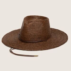 NWT New Will + Bear Austin Brown Raffia Straw Wide Brim Sun Hat Adjustable M