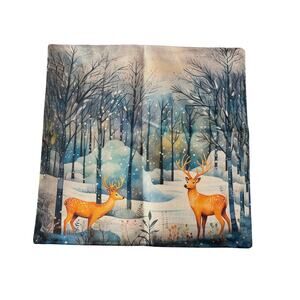 NWT New Winter Wonderland Deer Holiday 4 Piece Set 100% Linen Pillowcase Covers
