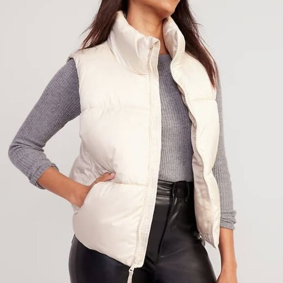 NWT New With Tag Old Navy Quilted Ivory Puffer Vest Size M