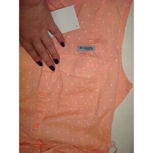 NWT New Womens Columbia Pink Peach Dot Dress PFG M White Pockets Cotton Rod Logo