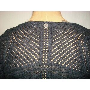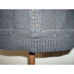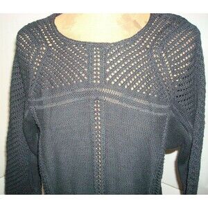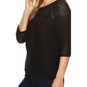 The relaxed sweater features a slight Dolman sleeve and novelty pointelle knit stitch.