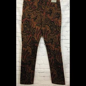 A lovely pair of skinny jeans fabulous colors. Laying the item flat waist measures 18 inches. Inseam measures about 31 inches. 98% cotton 2% spandex. They come from a smoke free pet free environment