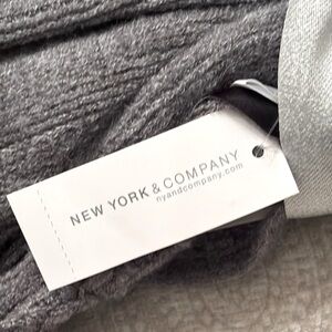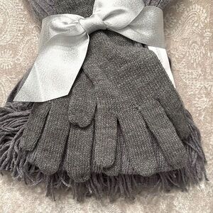 NWT New York & Co Gray Knit Fringe Scarf Pom Hat & Gloves Set Winter Cozy Gift