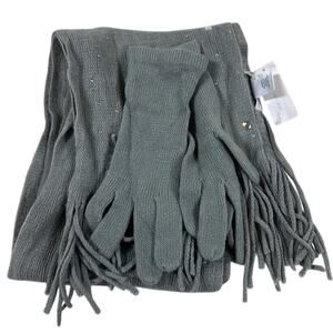 NWT New York & Company 2 Piece Glove and Scarf Matching Set Beaded Cozy Classy
