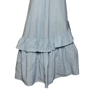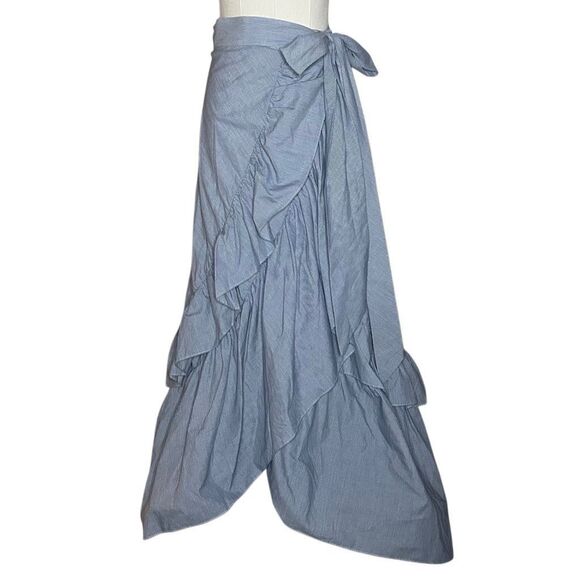 NWT New York & Company Blue Wrap Around Maxi Skirt Size M Striped Ruffle