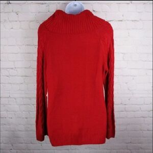 NWT size large cowl neck, cable knit sweater. Bell sleeves. This sweater has sheer stripes.