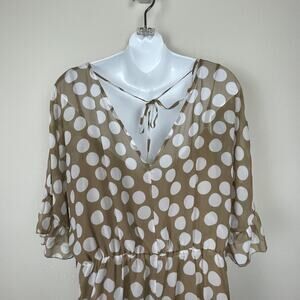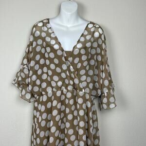 NWT New York & Company Dress XL White Polka Dot High-Low Chiffon Cottagecore