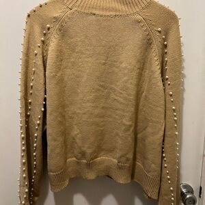 NWT! New York & Company Elegant Tan Sweater with Pearl Detailing