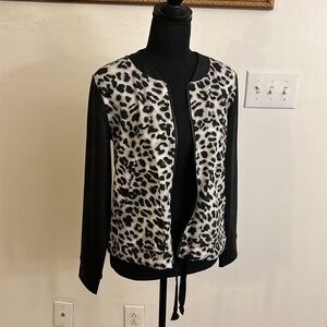 NWT New York & Company Faux Leather Faux Fur Leopard Print Bomber Jacket, Sz. XS. Turn heads in this on-trend faux leopard print bomber jacket with faux leather trim at neckline and sleeve. Front zip with two pockets. Brand new, so no flaws or damage. An excellent addition to any closet!