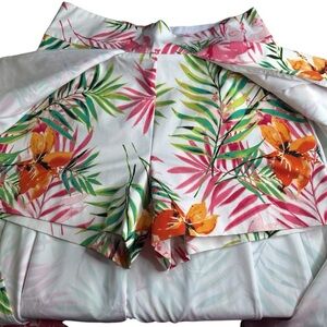 NWT New York & Company Pleated Overlay Tropical Floral Skirt With Shorts. Size L
