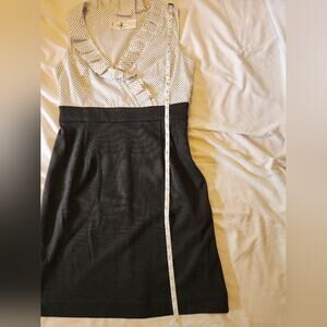 Sleeveless polka dot ruffle top dress with black skirt from New York & Company