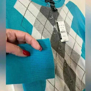NWT beautiful teal/turquoise argyle button down sweater. Very lightweight. Cotton rayon nylon blend. Can be worn alone or with a fitted tank or blouse underneath. Women’s XS. Smoke free home.