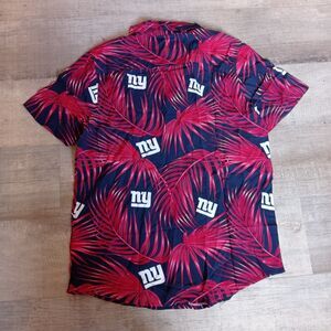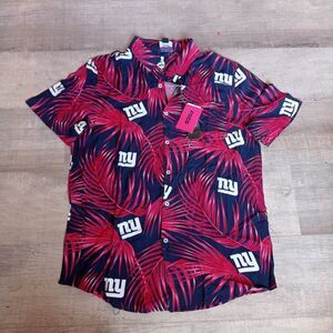 NWT New York Giants Size M NFL Hawaiian Button Up Shirt NY Short Sleeve Red Blue