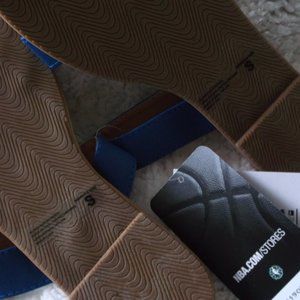 New with tags - Women's NBA FOCO brand New York Kicks double strap summer sandals. All man made materials. Size Small (5/6).