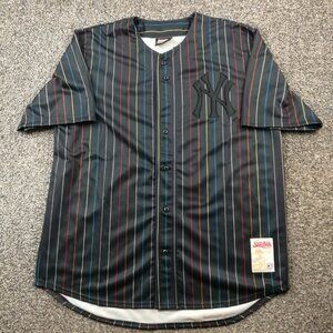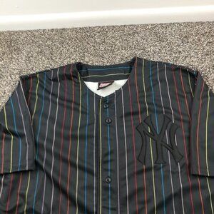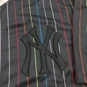 NWT New York Yankees Jersey Stitches Black Rainbow Striped Embroidered Mens XL